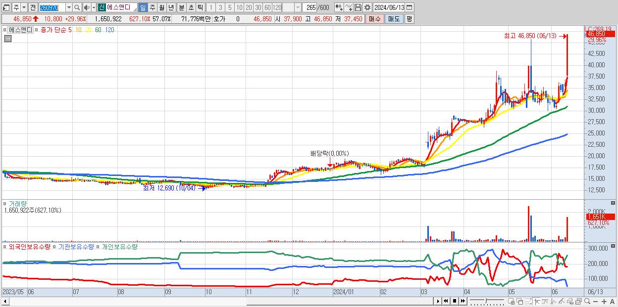 에스앤디 46,850원 ▲ 29.96% (KOSDAQ, 260970)