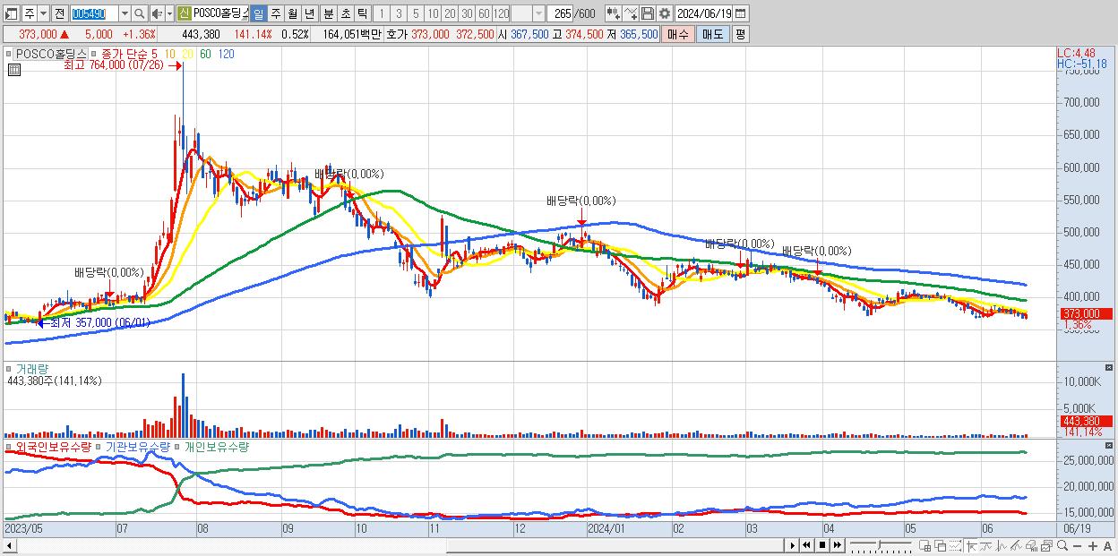 - POSCO홀딩스 (373,000원 ▲ 1.36% , 시총: 315,451억, 외국인 순매수 거래금:430억)