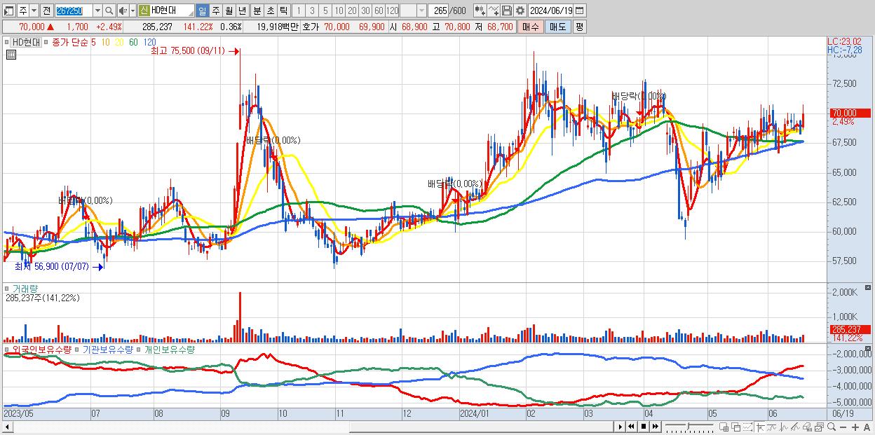 - HD현대 (70,000원 ▲ 2.49% , 시총: 55,295억, 외국인 순매수 거래금:79억)