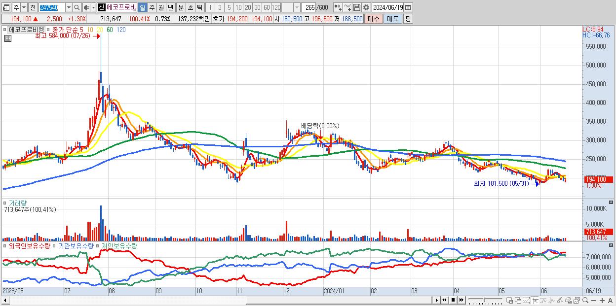 - 에코프로비엠 (194,100원 ▲ 1.3% , 시총: 189,832억, 외국인 순매수 거래금:163억)