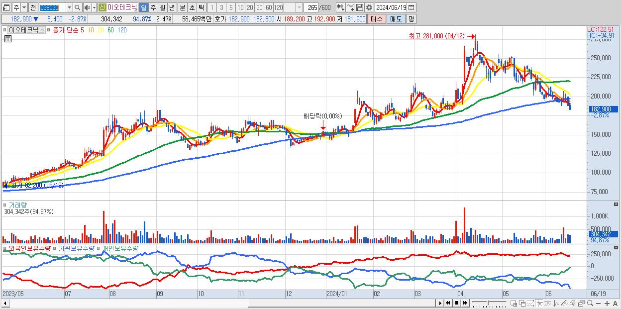 - 이오테크닉스 (182,900원 ▼ -2.87% , 시총: 22,532억, 외국인 순매수 거래금:124억)