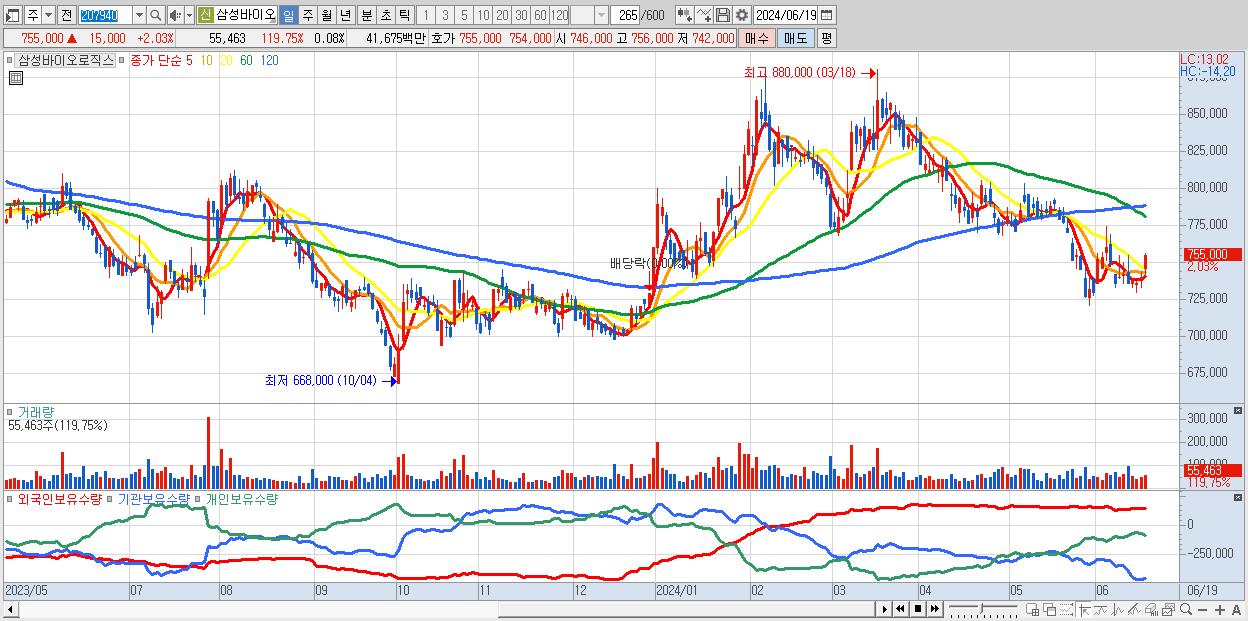 - 삼성바이오로직스 (755,000원 ▲ 2.03% , 시총: 537,364억, 외국인 순매수 거래금:79억)