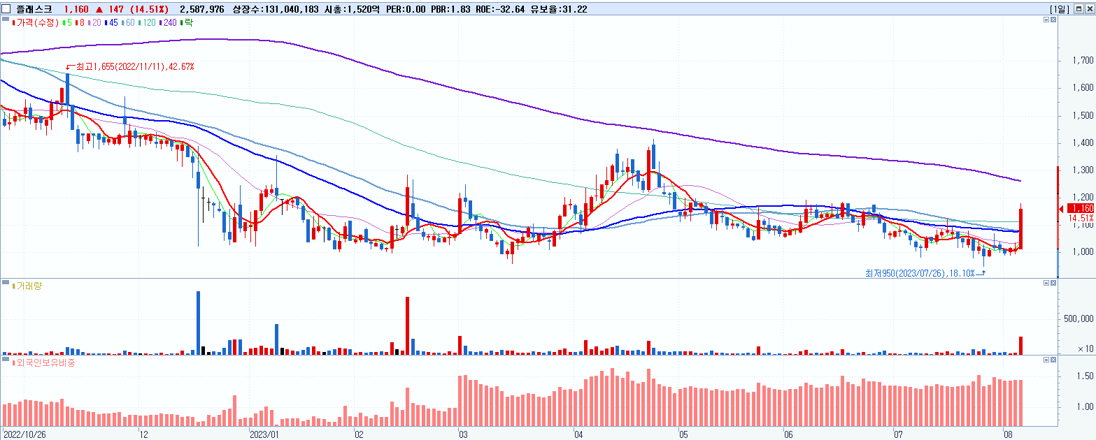 시총: 1,362억 거래량: 2,573,638 거래대금:157억