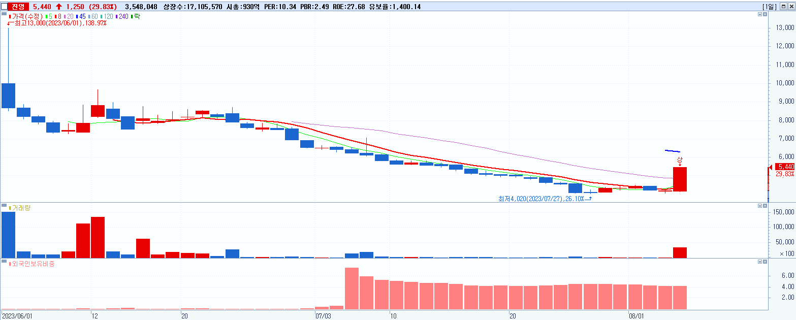 시총: 1,290억 거래량: 8,208,025 거래대금:3,027억