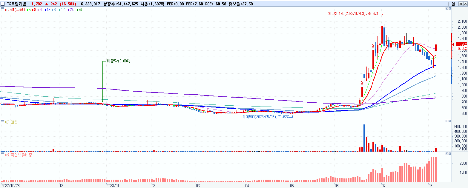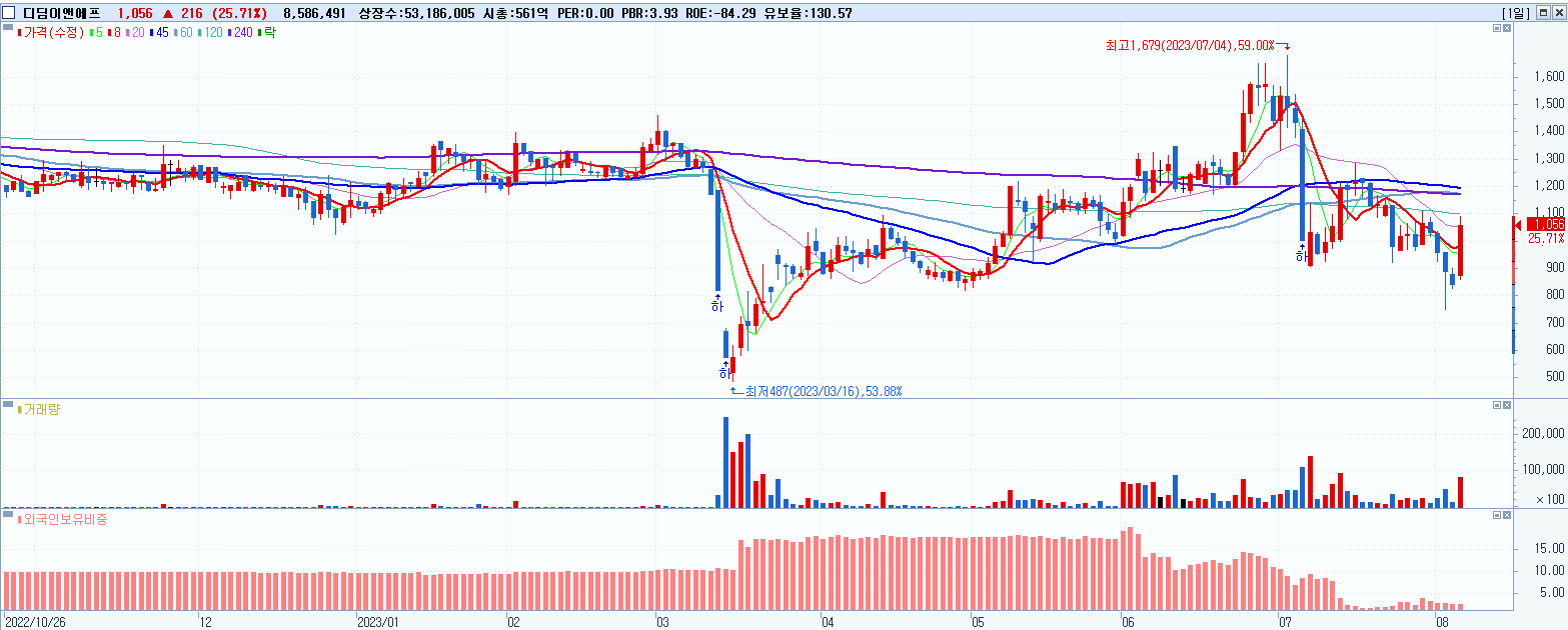 시총: 16,958억 거래량: 8,271,129 거래대금:8,568억