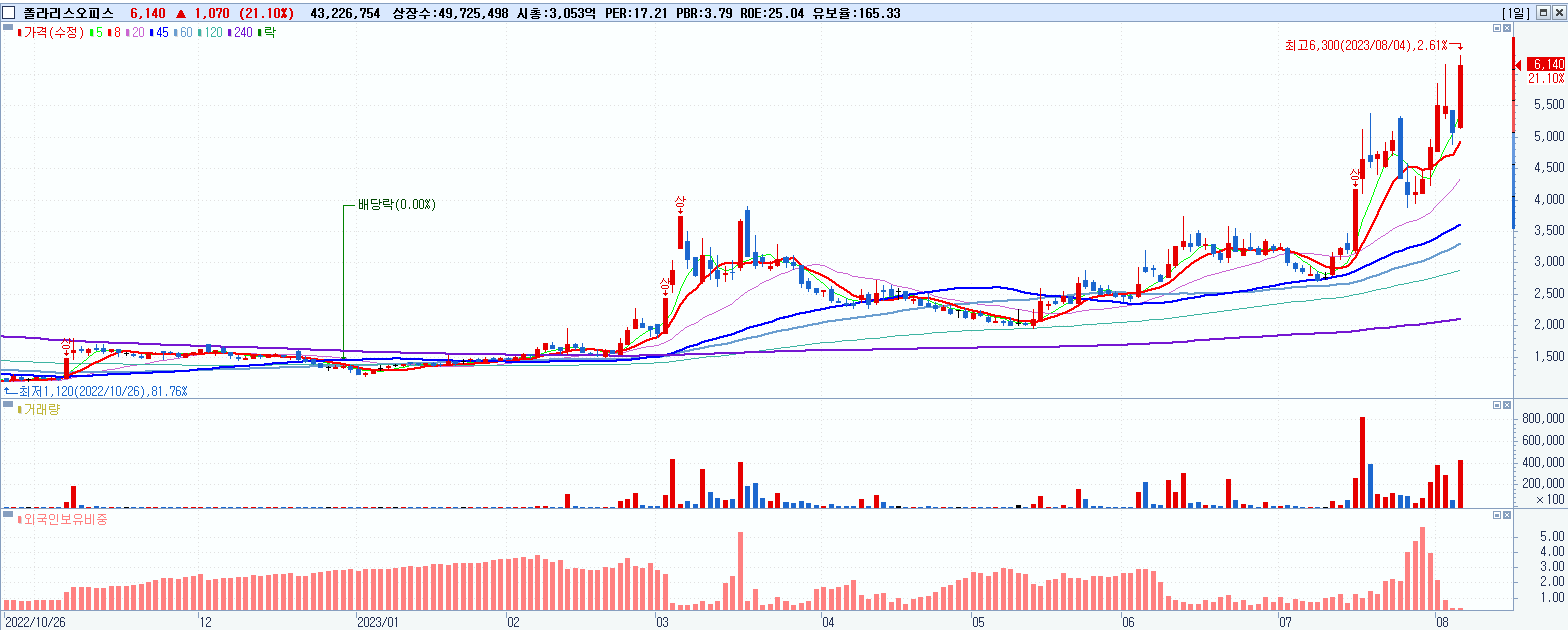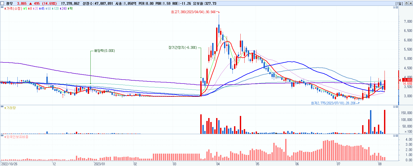 시총: 905억 거래량: 3,395,027 거래대금:76억