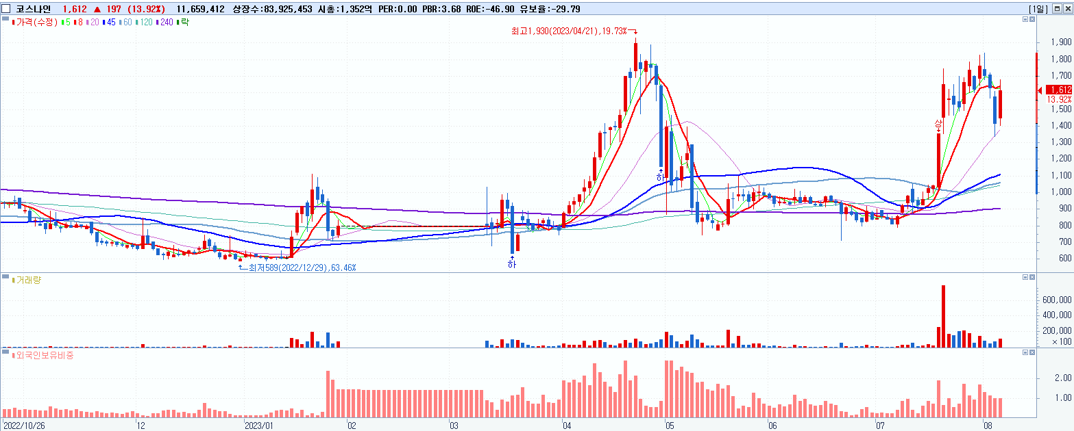 시총: 1,751억 거래량: 14,636,458 거래대금:1,510억