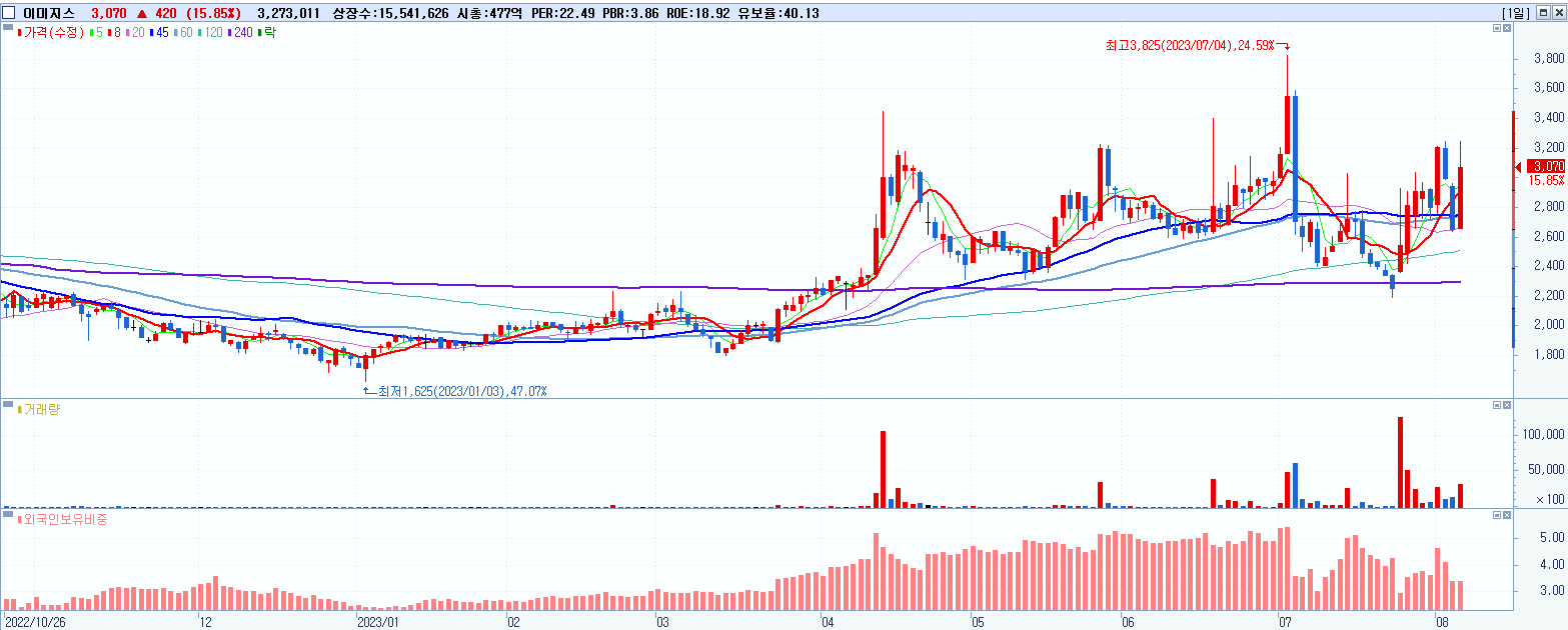 1.엠아이큐브솔루션 (373170) 등락율 122.5%