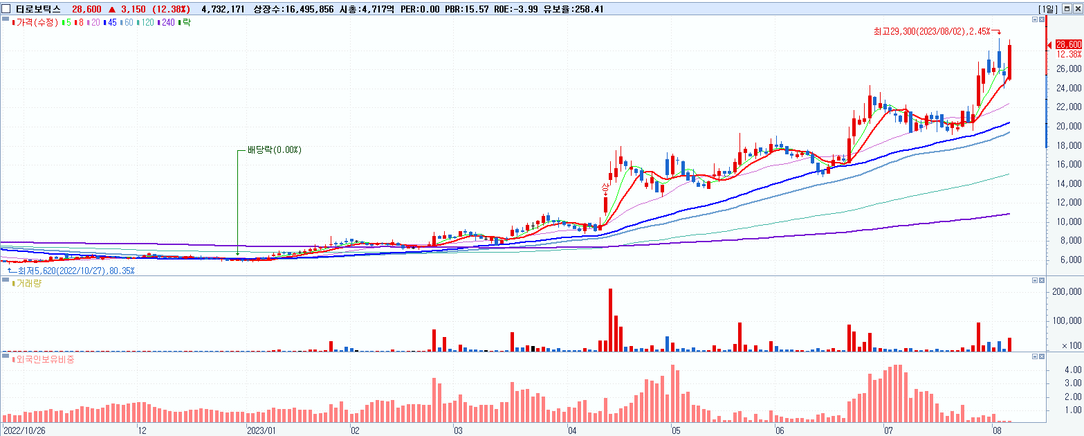 '티로보틱스' 52주 신고가 경신, 전일 기관 대량 순매수
