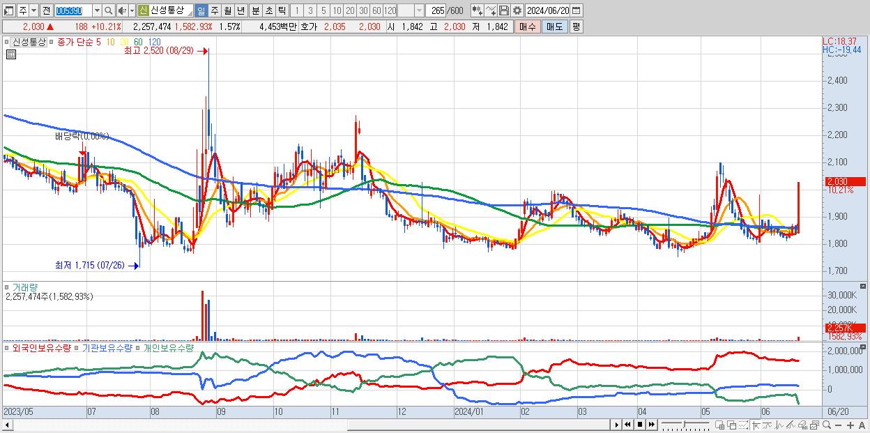 - 신성통상 (2,030원 ▲ 10.21% , 시총: 2,917억, 거래량: 2,257,474, 거래대금:45억)