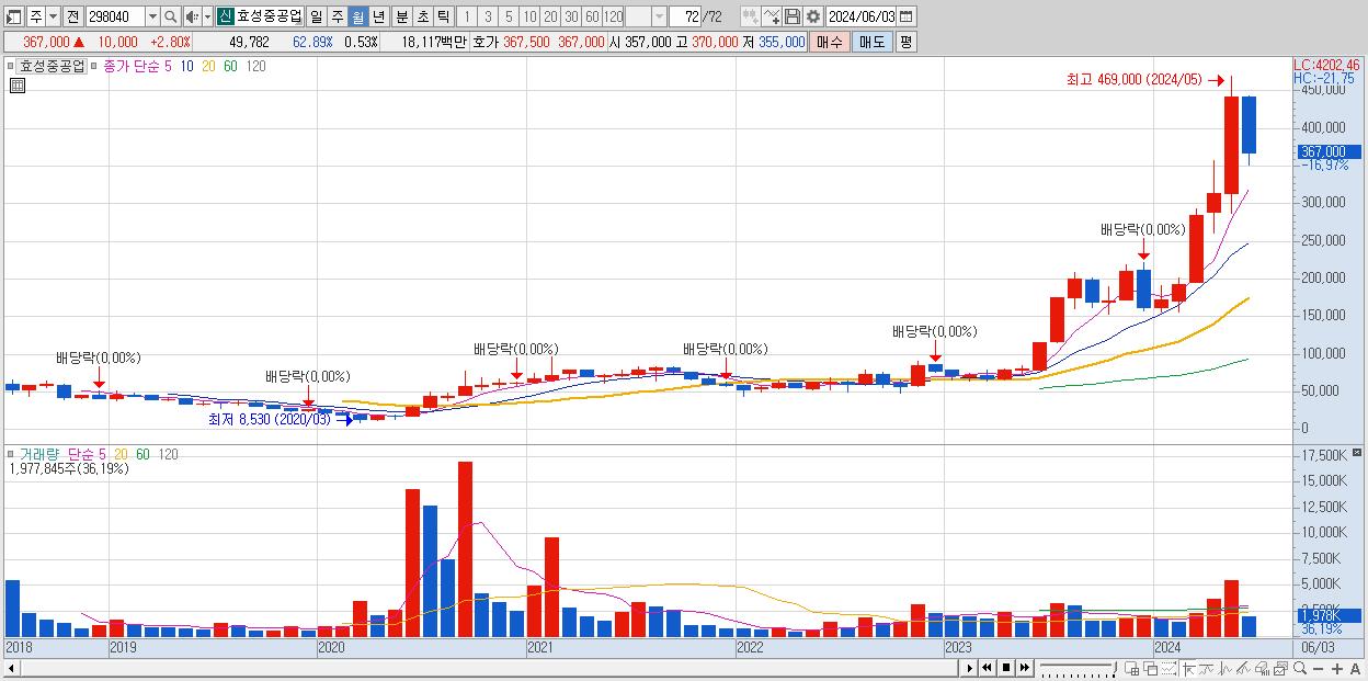 - 효성중공업 (356,500원 , 시총: 33,242억)