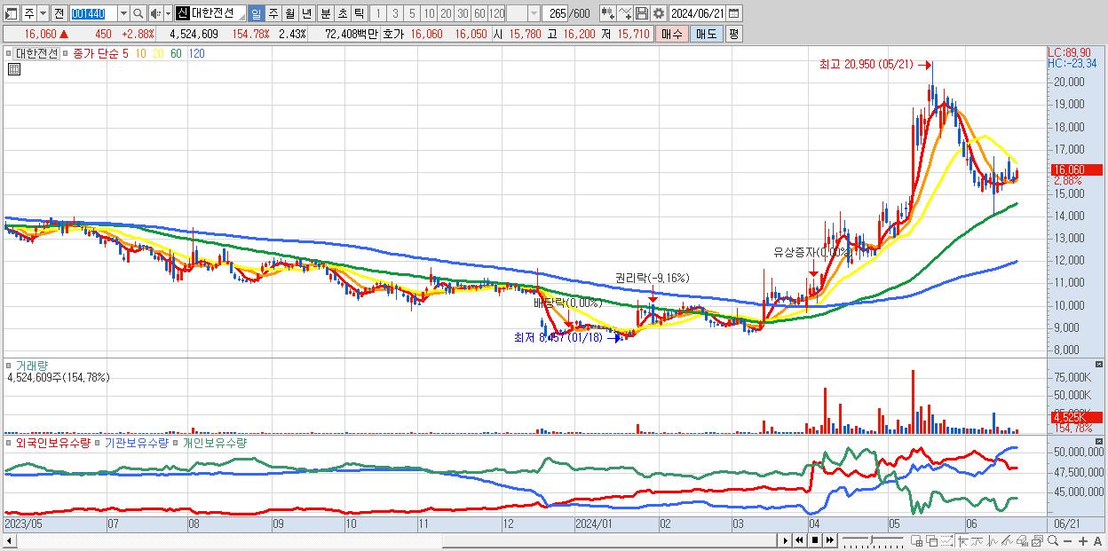 - 대한전선 (15,780원 , 시총: 29,421억)