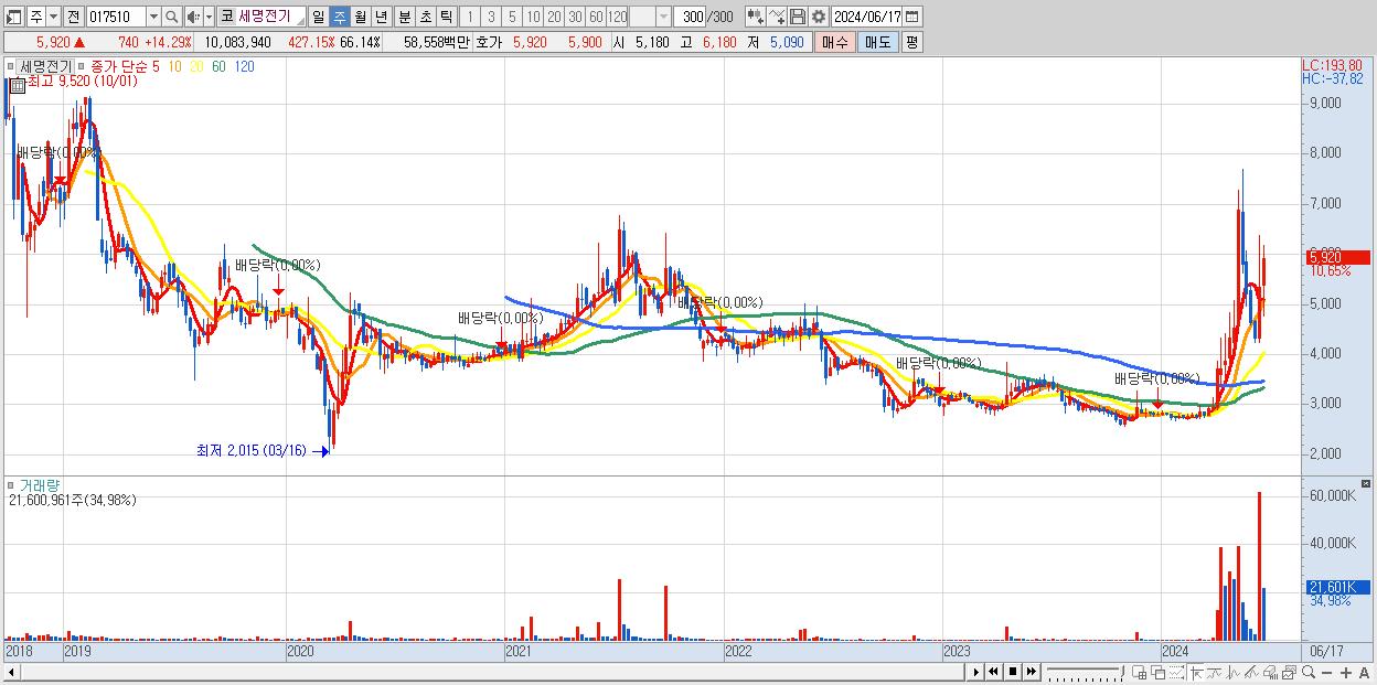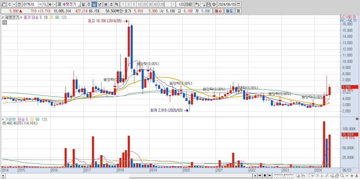 2.세명전기 5,530원 (KOSDAQ, 017510)시총: 843억