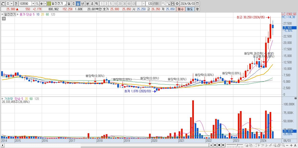 12.일진전기 25,450원 (KOSPI, 103590)시총: 12,136억
