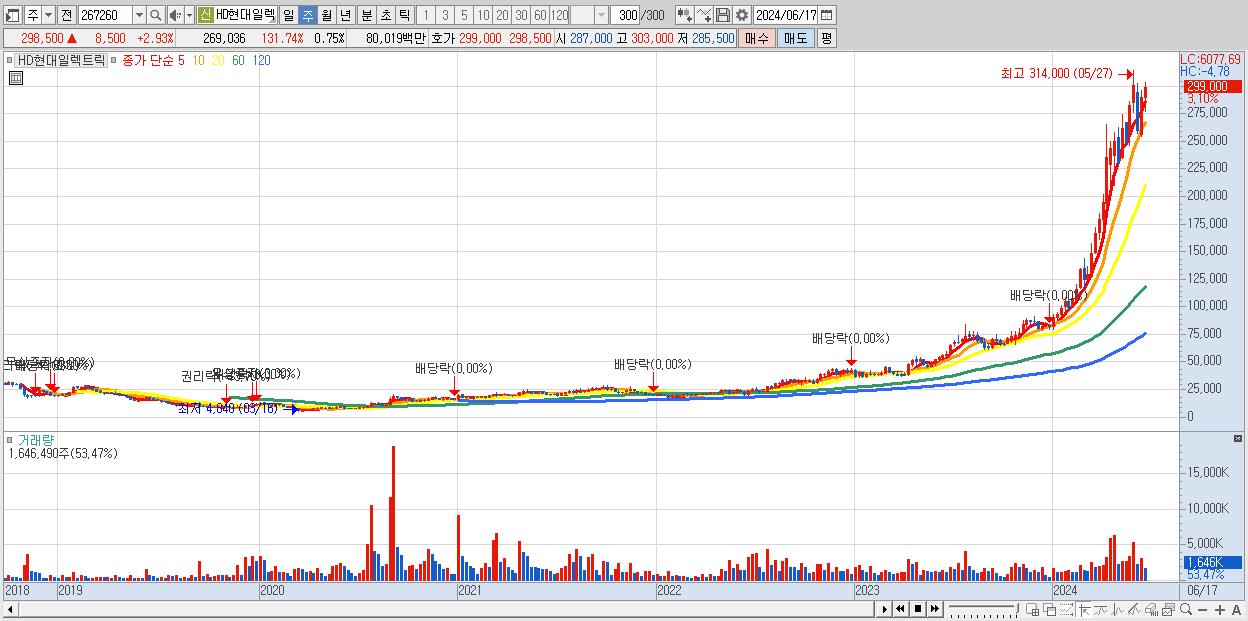 - HD현대일렉트릭 (292,500원 , 시총: 105,438억)