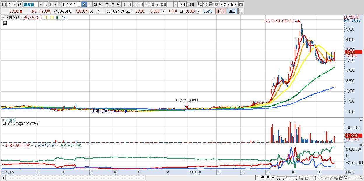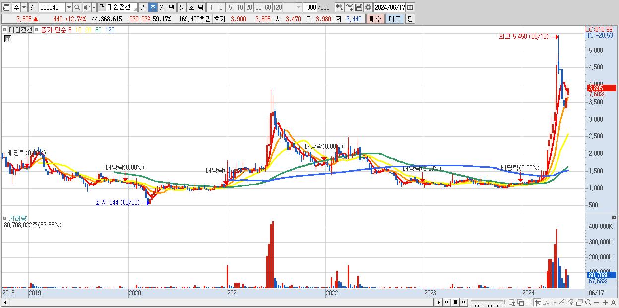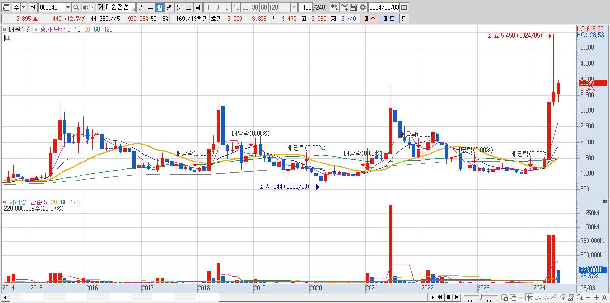 - 대원전선 (3,650원 , 시총: 2,737억)