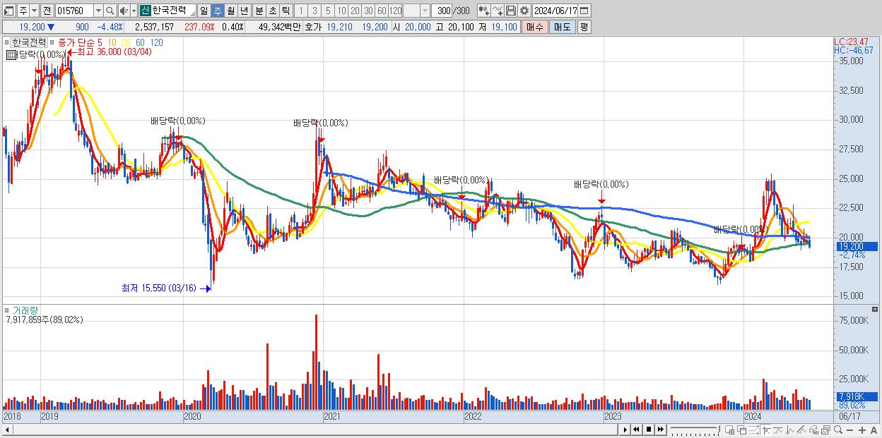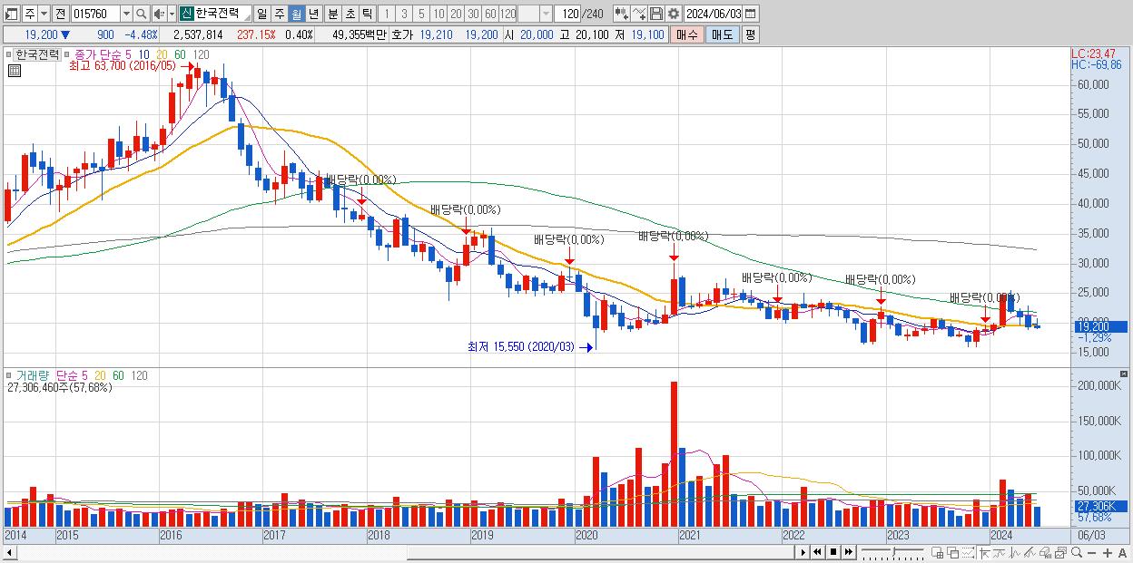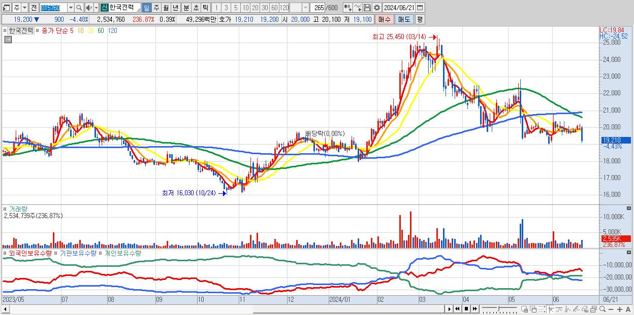- 한국전력 (19,610원 , 시총: 125,889억)