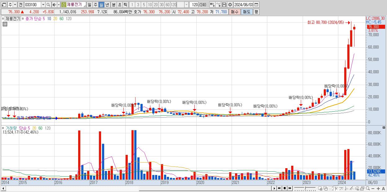 13.제룡전기 72,700원 (KOSDAQ, 033100)시총: 11,677억