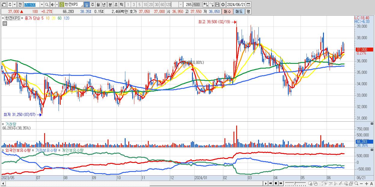 - 한전KPS (37,000원 , 시총: 16,650억)