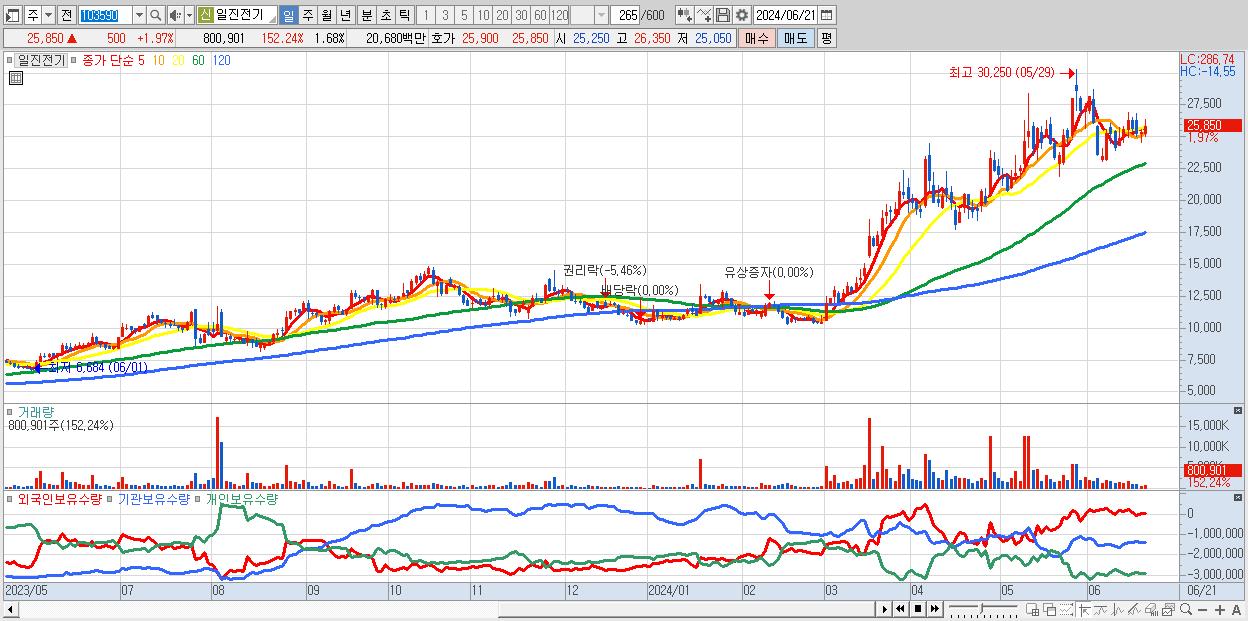 - 일진전기 (25,450원 , 시총: 12,136억)