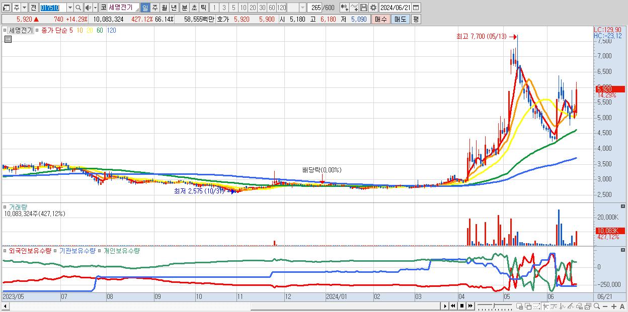 - 세명전기 (5,530원 , 시총: 843억)