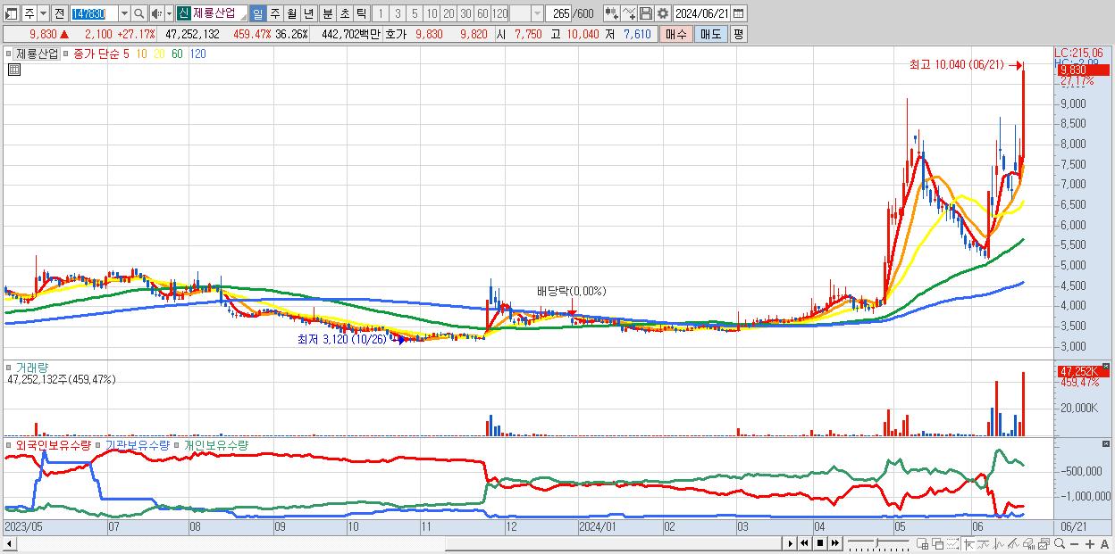 제룡산업 9,830원 ▲ 27.17% (KOSDAQ, 147830)