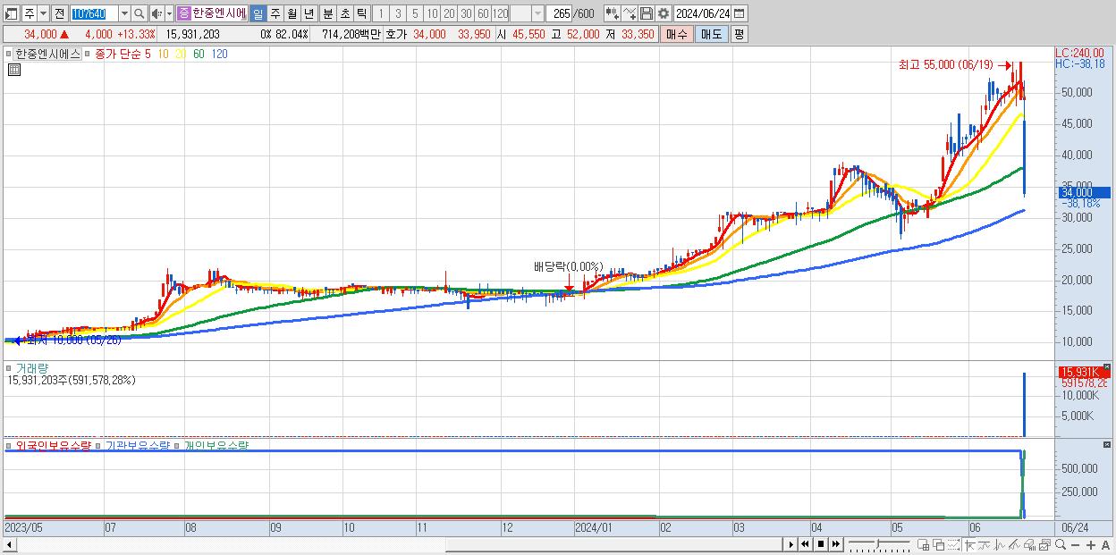 - 한중엔시에스 (34,000원 ▲ 13.33% , 시총: 2,975억, 거래량: 15,931,203, 거래대금:7,142억)
