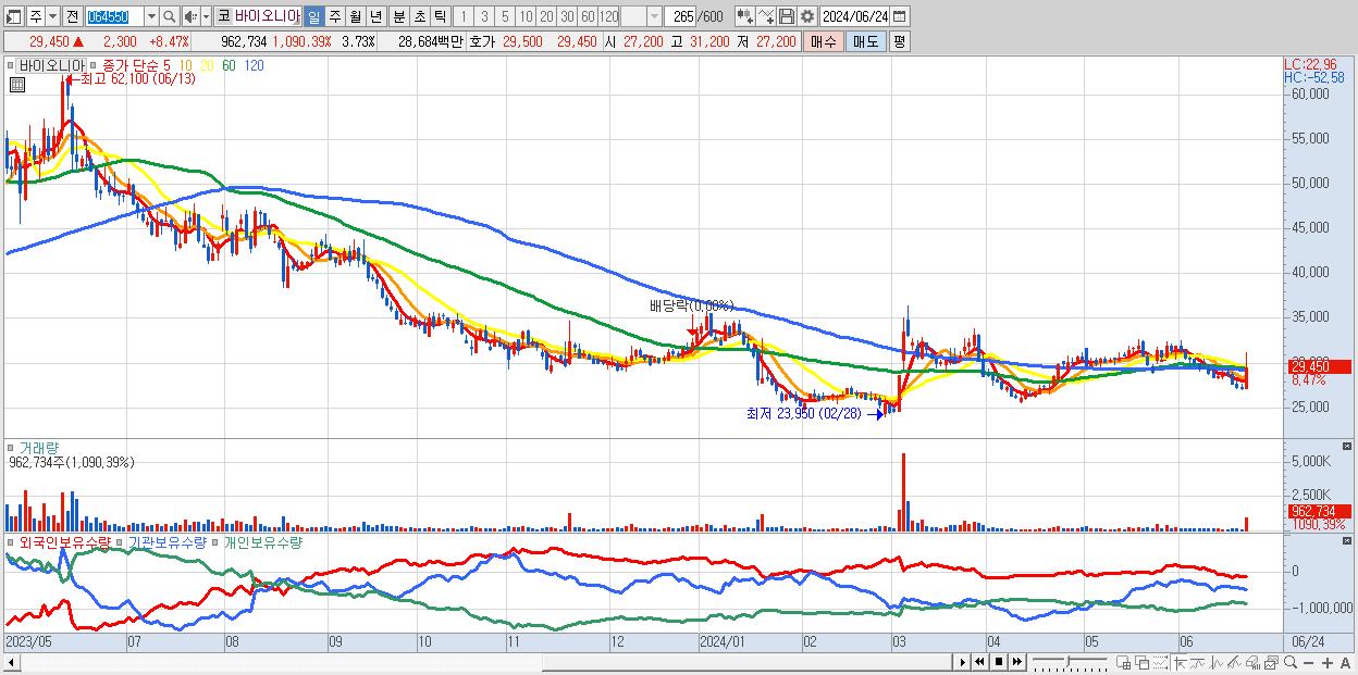 - 바이오니아 (29,450원 ▲ 8.47% , 시총: 7,601억, 거래량: 962,734, 거래대금:287억)
