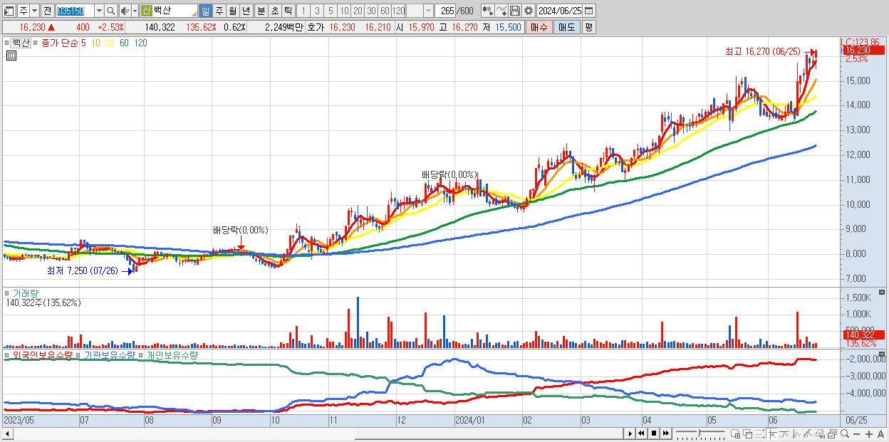백산 16,230원 ▲ 2.53% (KOSPI, 035150)