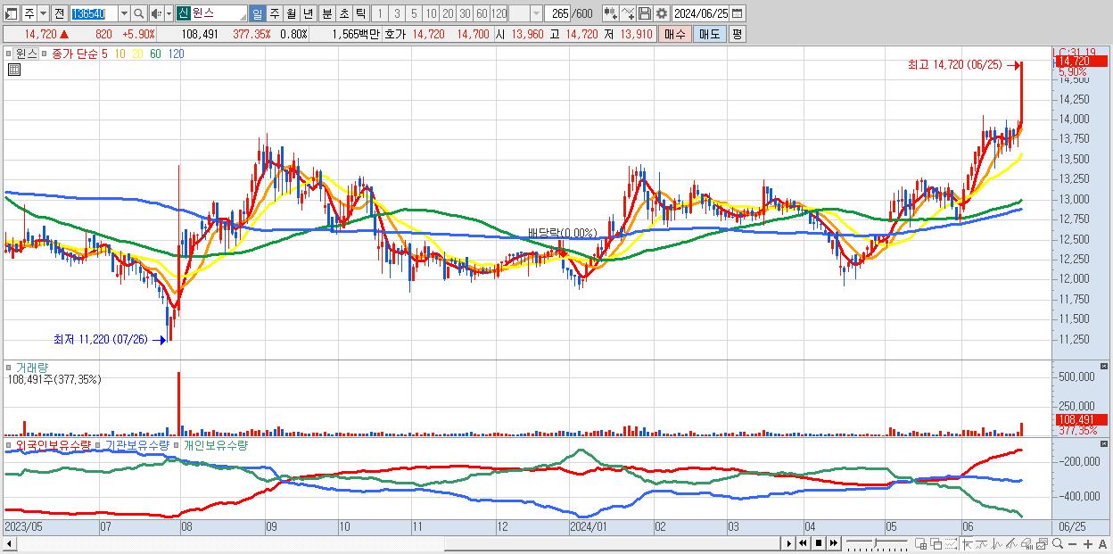 윈스 14,720원 ▲ 5.9% (KOSDAQ, 136540)