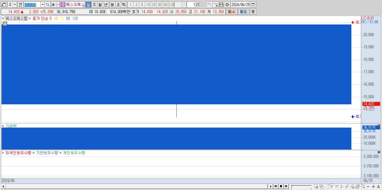 - 에스오에스랩 (14,420원 ▲ 25.39% , 시총: 2,528억, 거래량: 36,916,799, 거래대금:6,140억)
