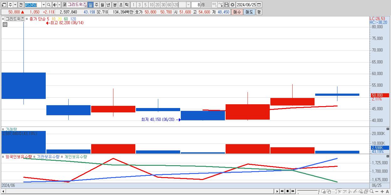 - 그리드위즈 (50,800원 ▲ 2.11% , 시총: 4,035억, 거래량: 2,597,840, 거래대금:1,344억)
