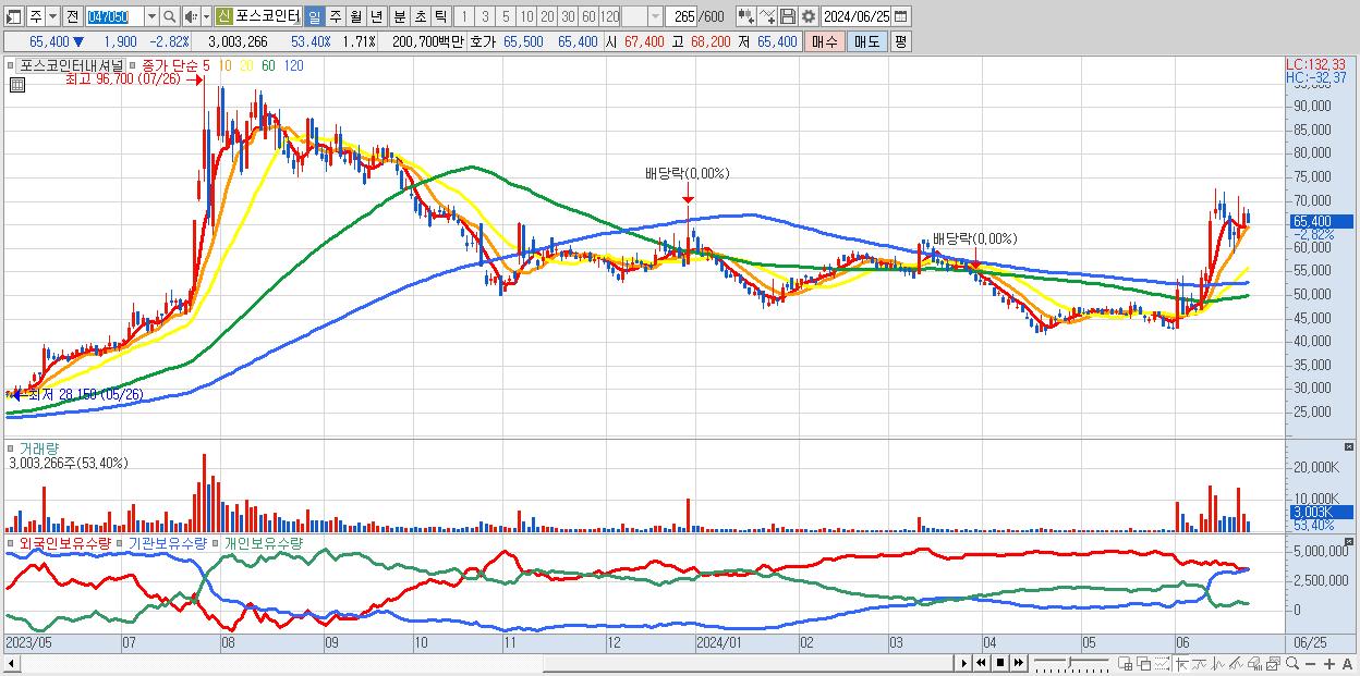 - 포스코인터내셔널 (65,400원 ▼ -2.82% , 시총: 115,054억, 거래량: 3,003,266, 거래대금:2,007억)