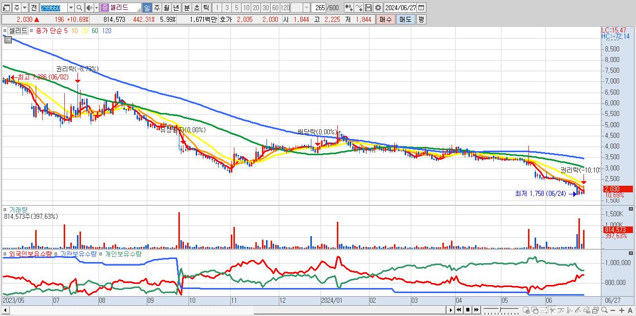 - 셀리드 (2,030원 ▲ 10.69% , 시총: 276억, 거래량: 814,573, 거래대금:17억)
