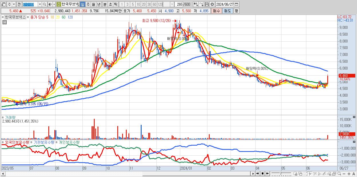 - 한국무브넥스 (5,460원 ▲ 10.64% , 시총: 1,663억, 거래량: 2,980,443, 거래대금:158억)