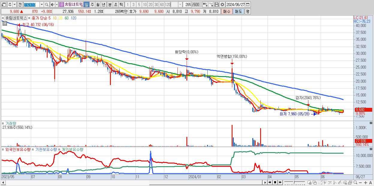 - 휴림네트웍스 (9,680원 ▲ 9.88% , 시총: 211억, 거래량: 27,936, 거래대금:3억)