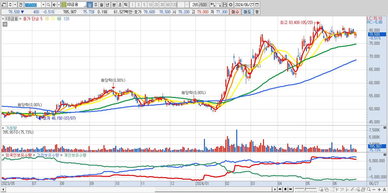 30.KB금융 78,500원 ▼ -0.51% (KOSPI, 105560)
