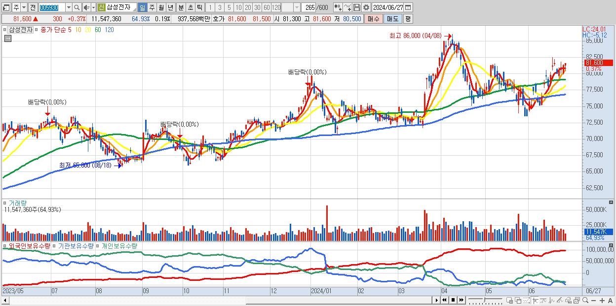 1.삼성전자 81,600원 ▲ 0.37% (KOSPI, 005930)