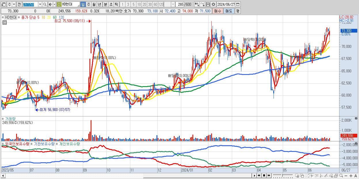 - HD현대 (73,300원 0% , 시총: 57,902억, 외국인 순매수 거래금:59억)