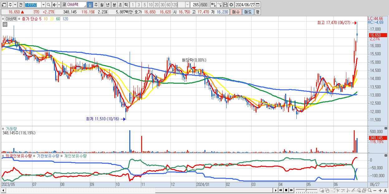 아바텍 16,650원 ▲ 2.27% (KOSDAQ, 149950)