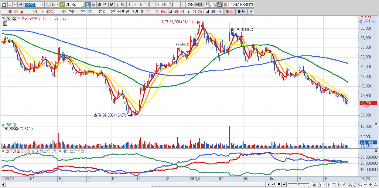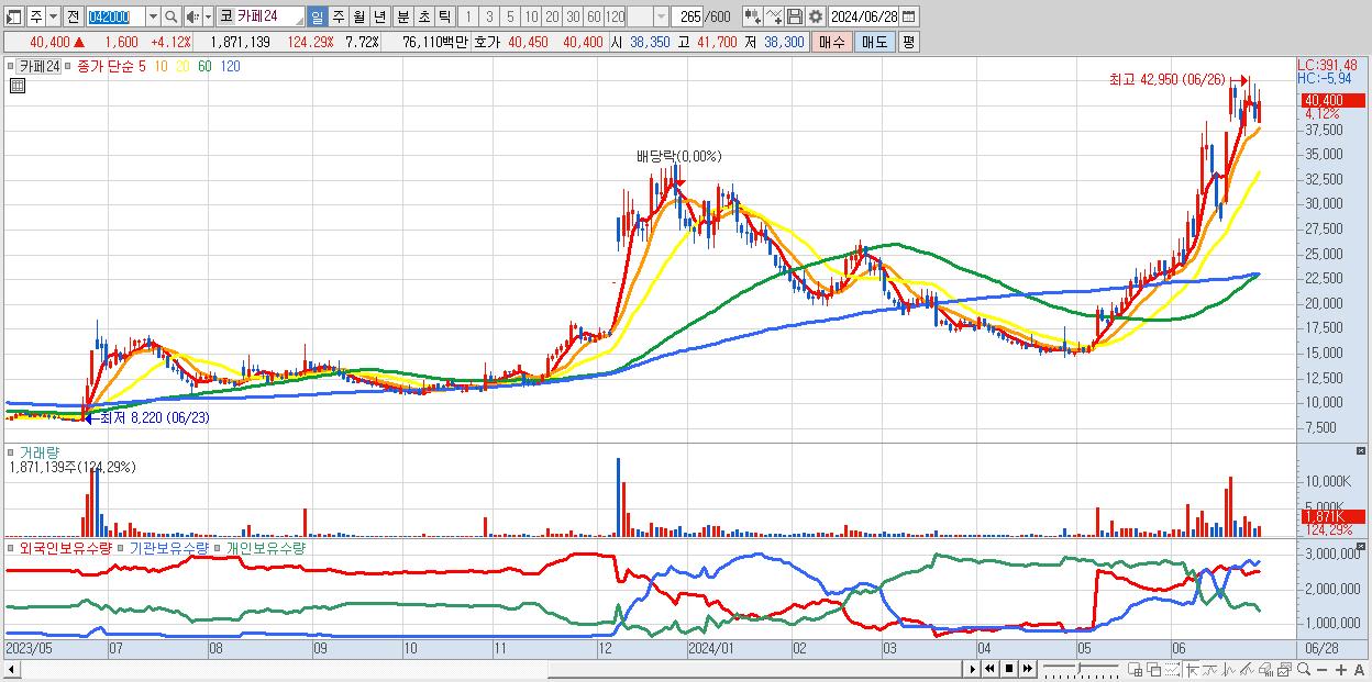 30.카페24 40,400원 ▲ 4.12% (KOSDAQ, 042000)