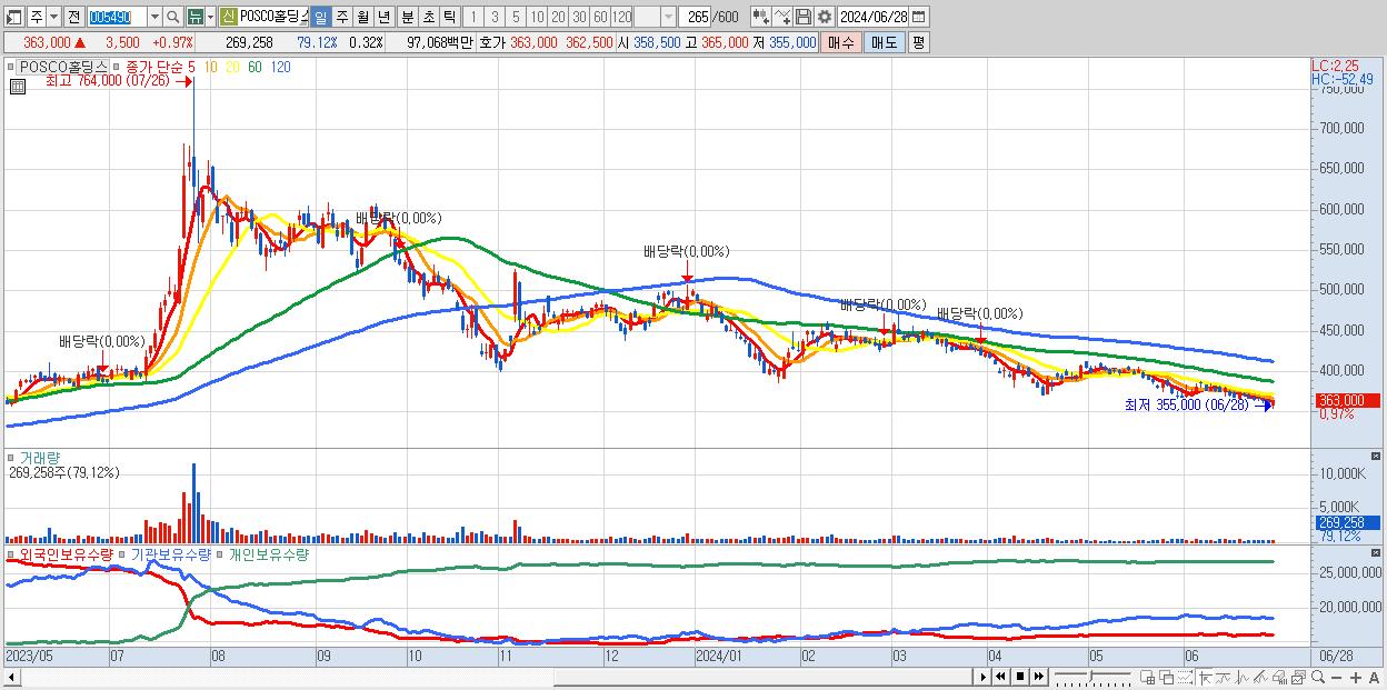 - POSCO홀딩스 (363,000원 ▲ 0.97% , 시총: 306,994억, 외국인 순매수 거래금:270억)