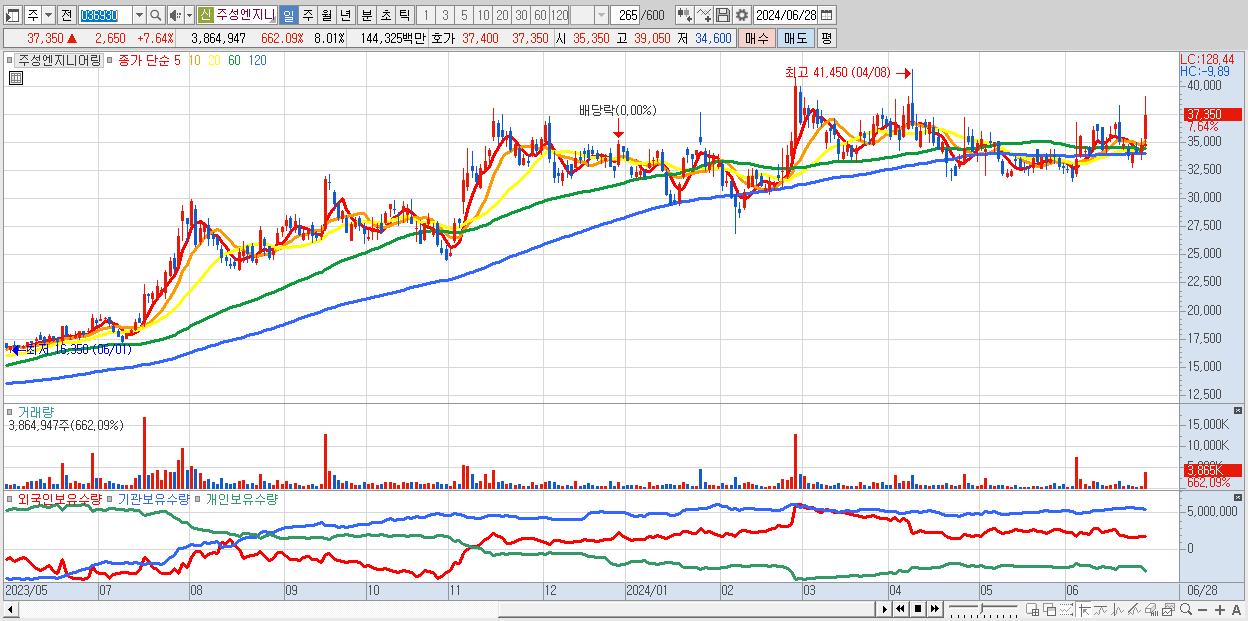 - 주성엔지니어링 (37,350원 ▲ 7.64% , 시총: 18,021억, 외국인 순매수 거래금:282억)