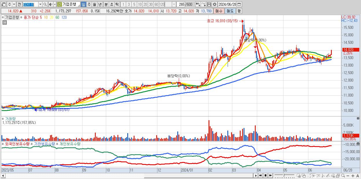 - 기업은행 (14,020원 ▲ 2.26% , 시총: 111,799억, 외국인 순매수 거래금:61억)