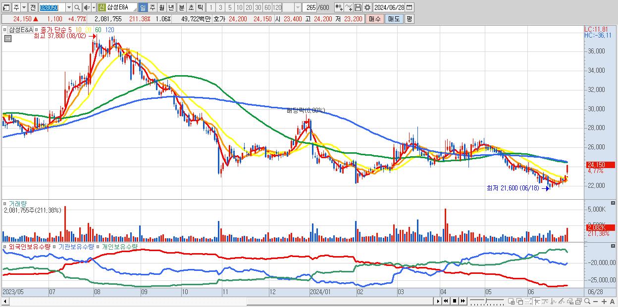 - 삼성E&A (24,150원 ▲ 4.77% , 시총: 47,334억, 외국인 순매수 거래금:171억)