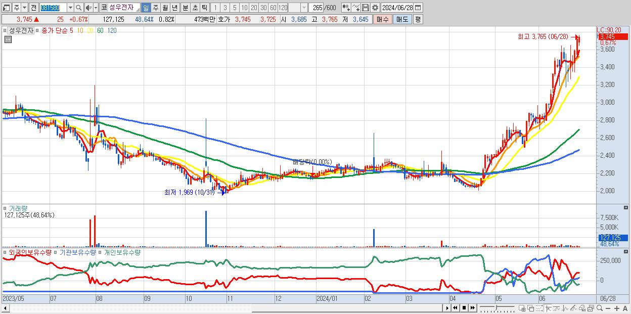 성우전자 3,745원 ▲ 0.67% (KOSDAQ, 081580)
