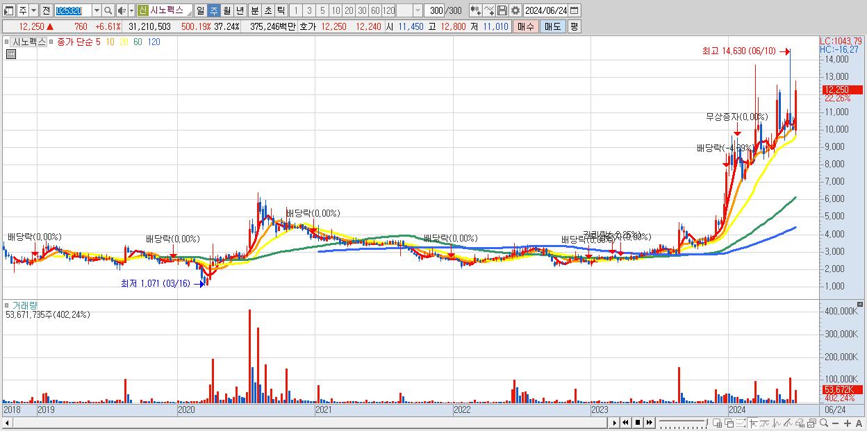 - 시노펙스 (12,250원 ▲ 22.26% , 시총: 10,268억, 거래량: 53,671,735, 거래대금:6,192억)