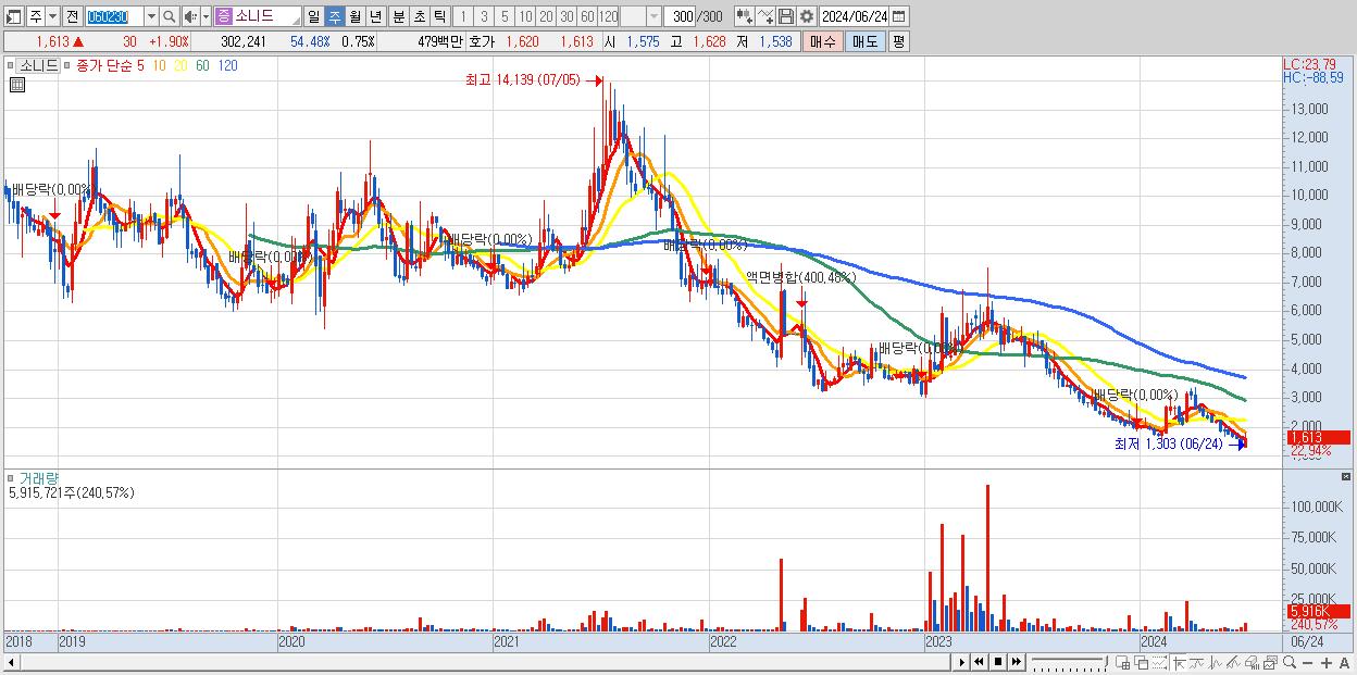- 소니드 (1,613원 ▲ 22.94% , 시총: 651억, 거래량: 5,915,721, 거래대금:93억)