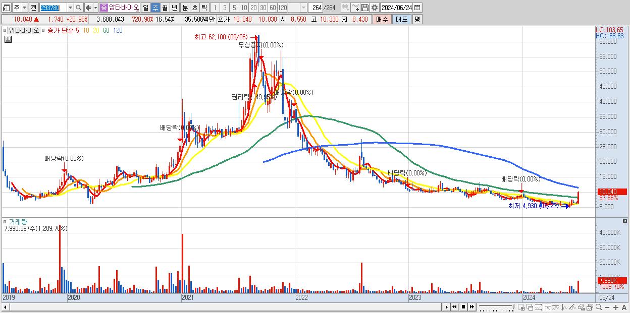 2.압타바이오 10,040원 ▲ 57.86% (KOSDAQ, 293780)