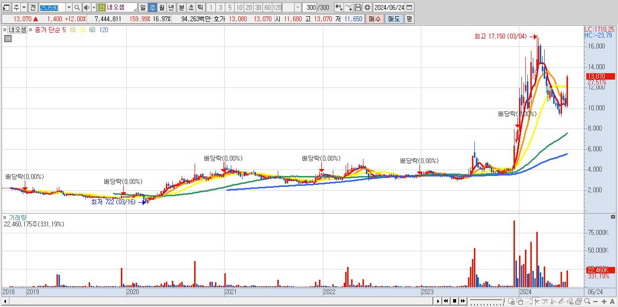 - 네오셈 (13,070원 ▲ 27.51% , 시총: 5,734억, 거래량: 22,460,175, 거래대금:2,710억)